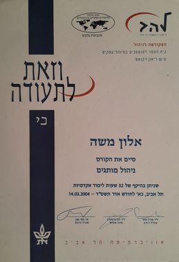 - בעברו אלון הוסמך בין היתר בגישור סכסוכים וניהול מותגים.